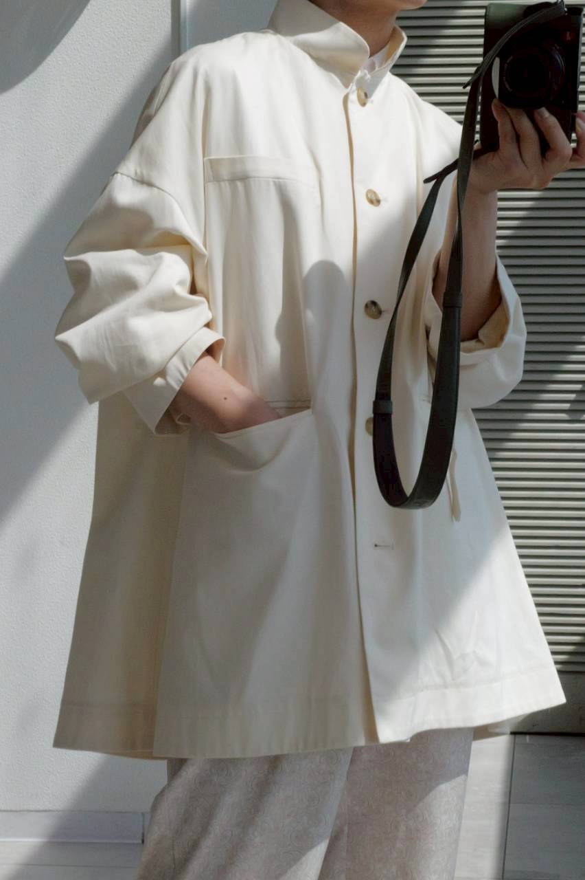軽さのあるスタンドカラーのフレアハーフコートになります。