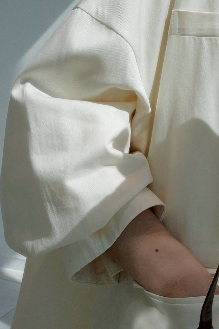 肩はラグラン、裾はフレアですっきり見せながらもディティールを