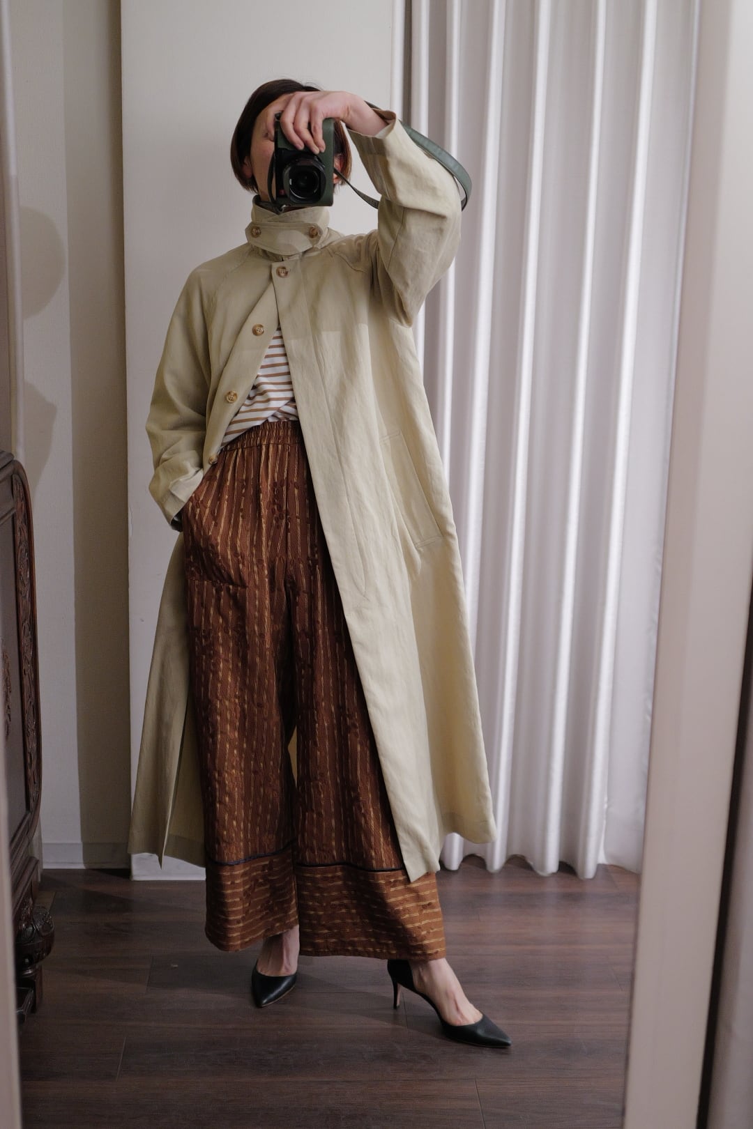 首元まで釦をとめるとトラッドな雰囲気を醸し出して