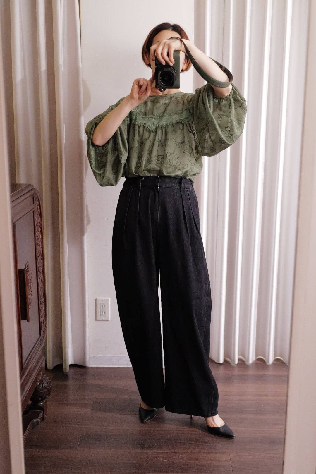 size サイズ1 ウエスト31㎝(ウエストゴム) 股下65㎝ サイズ2 ウエスト32cm(ウエストゴム) 股下69cm ※ウエストにドローコードがついているので調整可能 ※162㎝着用 ※置き寸法