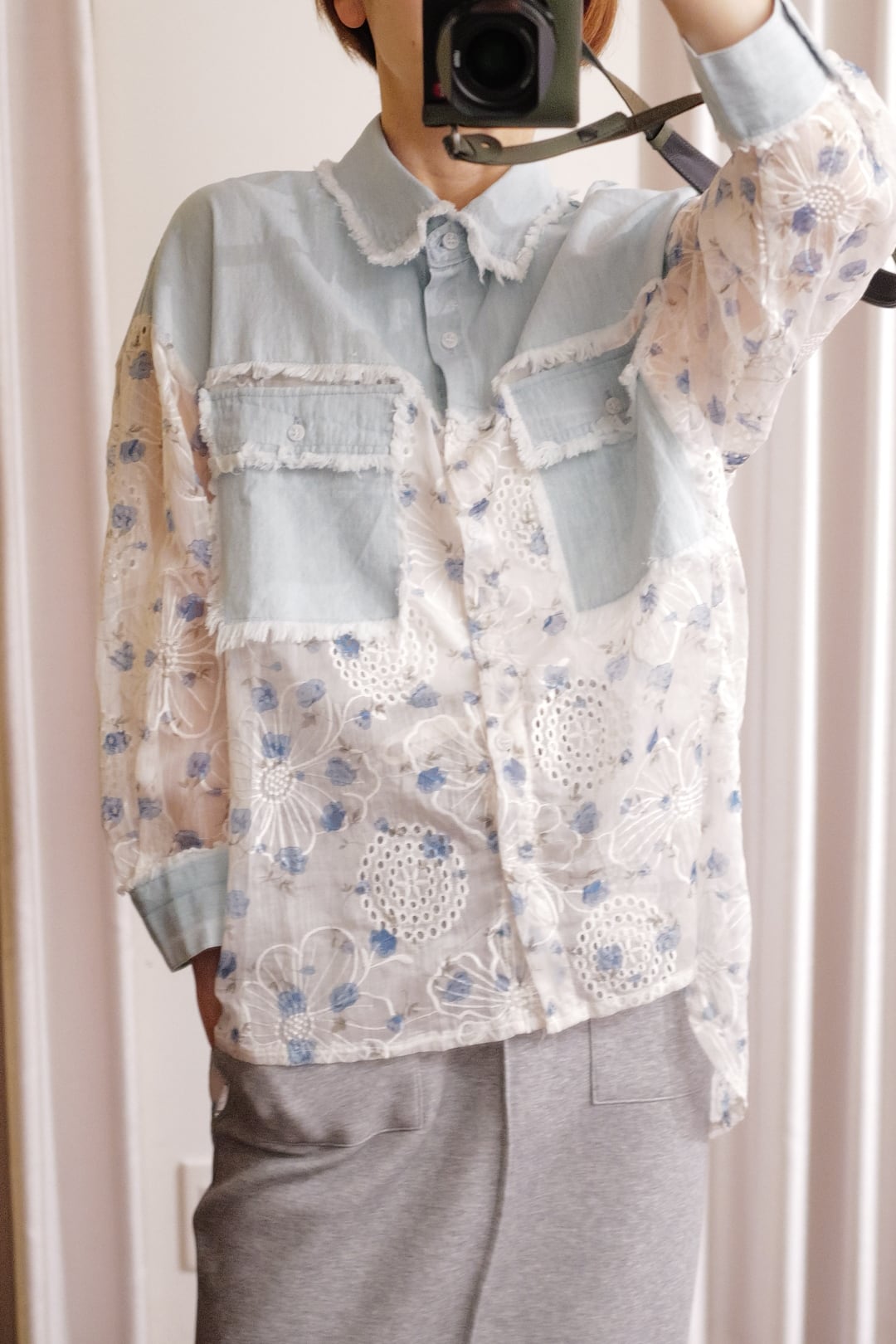 embroidery sheer denim shirt blue