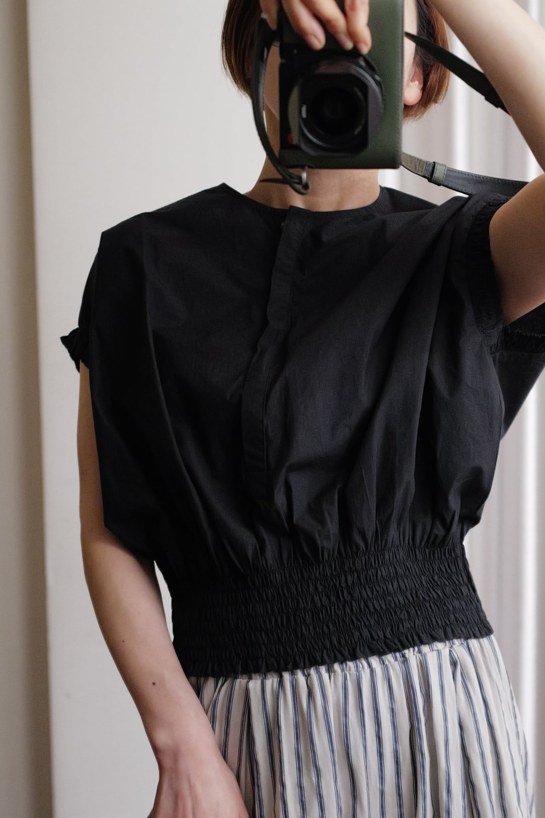 袖と裾部分にシャーリングを施し、自然な絞りディティーるが作れるので
