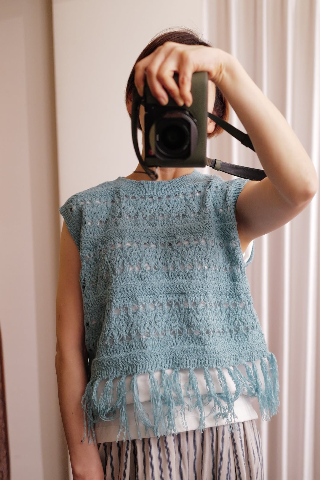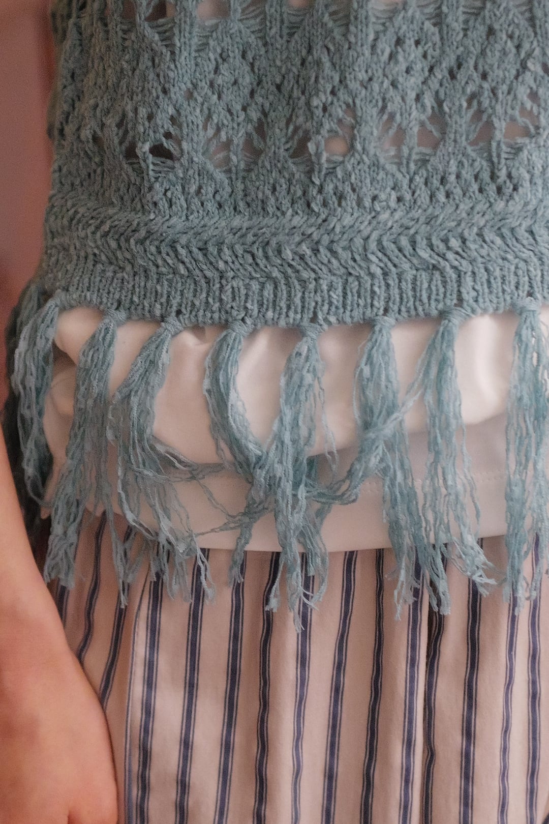 size FREEサイズ 着丈52㎝(フリンジ部分12㎝含む) 身幅47.5cm 裄丈22cm ※162㎝着用 ※置き寸法