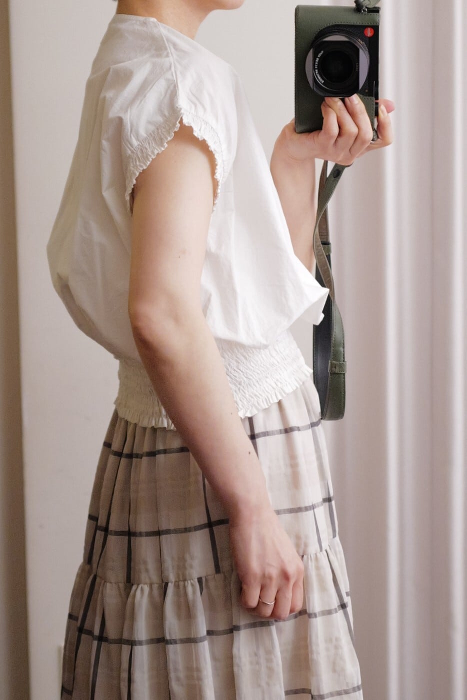 ■商品詳細 盛夏でも涼しいインド綿の中でナチュラル見えしない程よいハリのある素材を使用。 袖と裾部分にシャーリングを施し、自然な絞りディティーるが作れるので コンパクトなデザインながらスタイリングが合わせやすい1枚です。 小柄な方や、スカートやワイドパンツと合わせるのがおすすめです。 ■カラー ペイズリー柄グレー ■サイズ フリーサイズ 着丈:約51cm 身幅:約51cm ゆき丈:約30cm ■素材 綿 100% ■洗濯表示 家庭洗濯可 ■原産国 インド ■商品番号 2121261