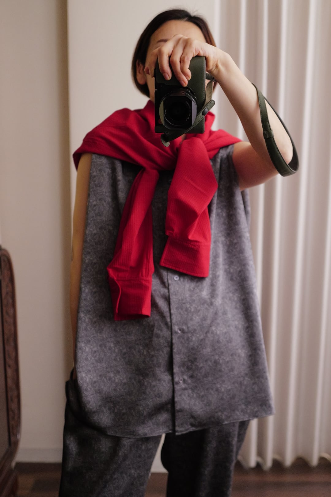 ノースリーブながらインタック仕様で肩回りを覆い隠し
