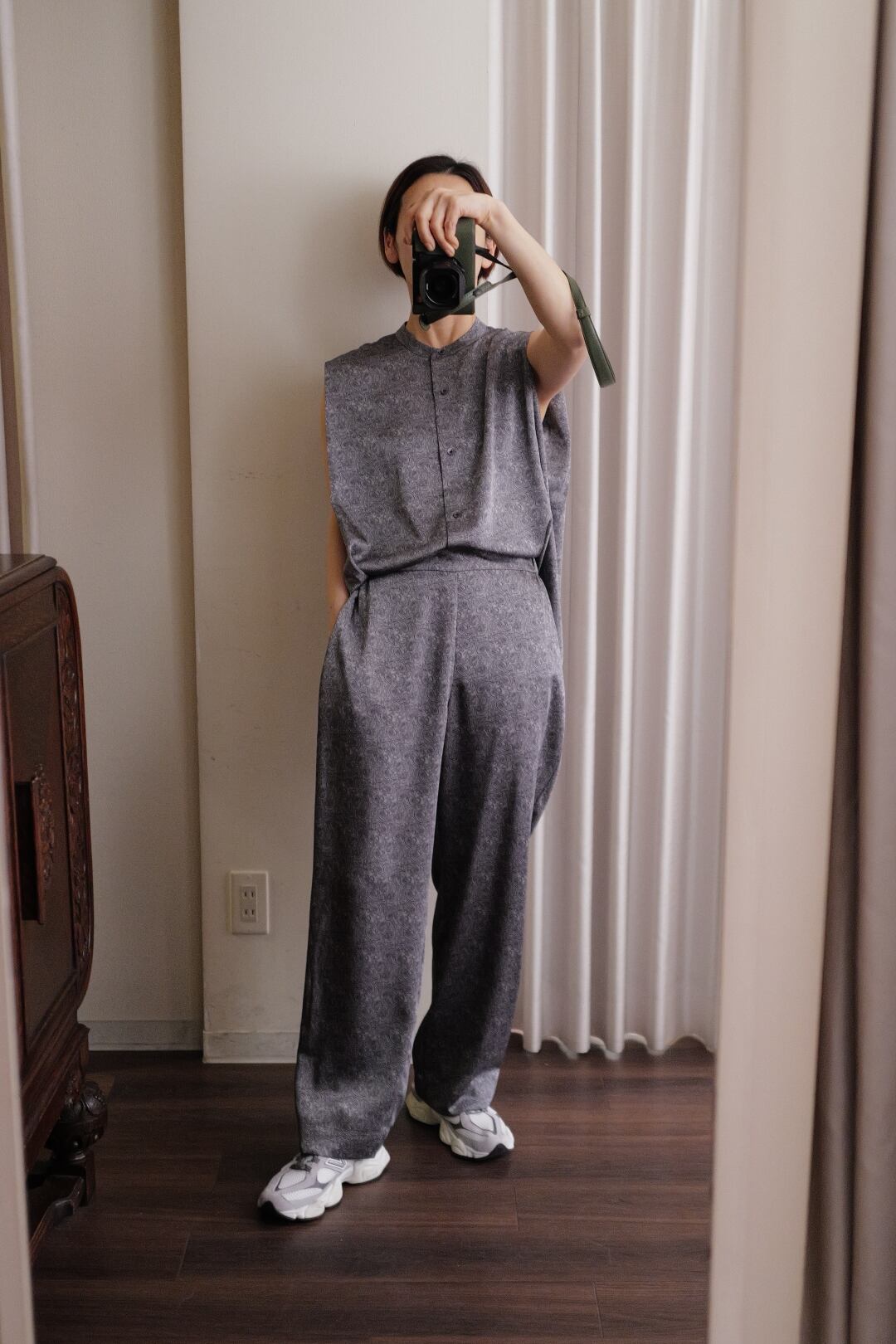 同色サテンペイズリー柄が際立つように、なるべくシンプルに