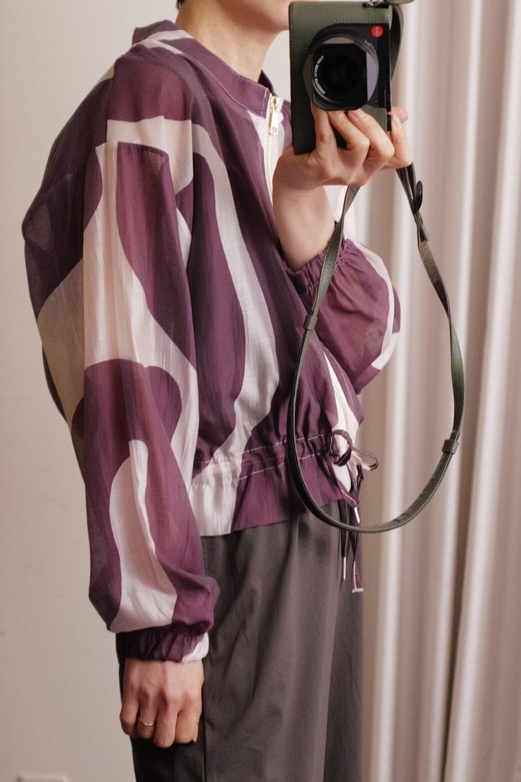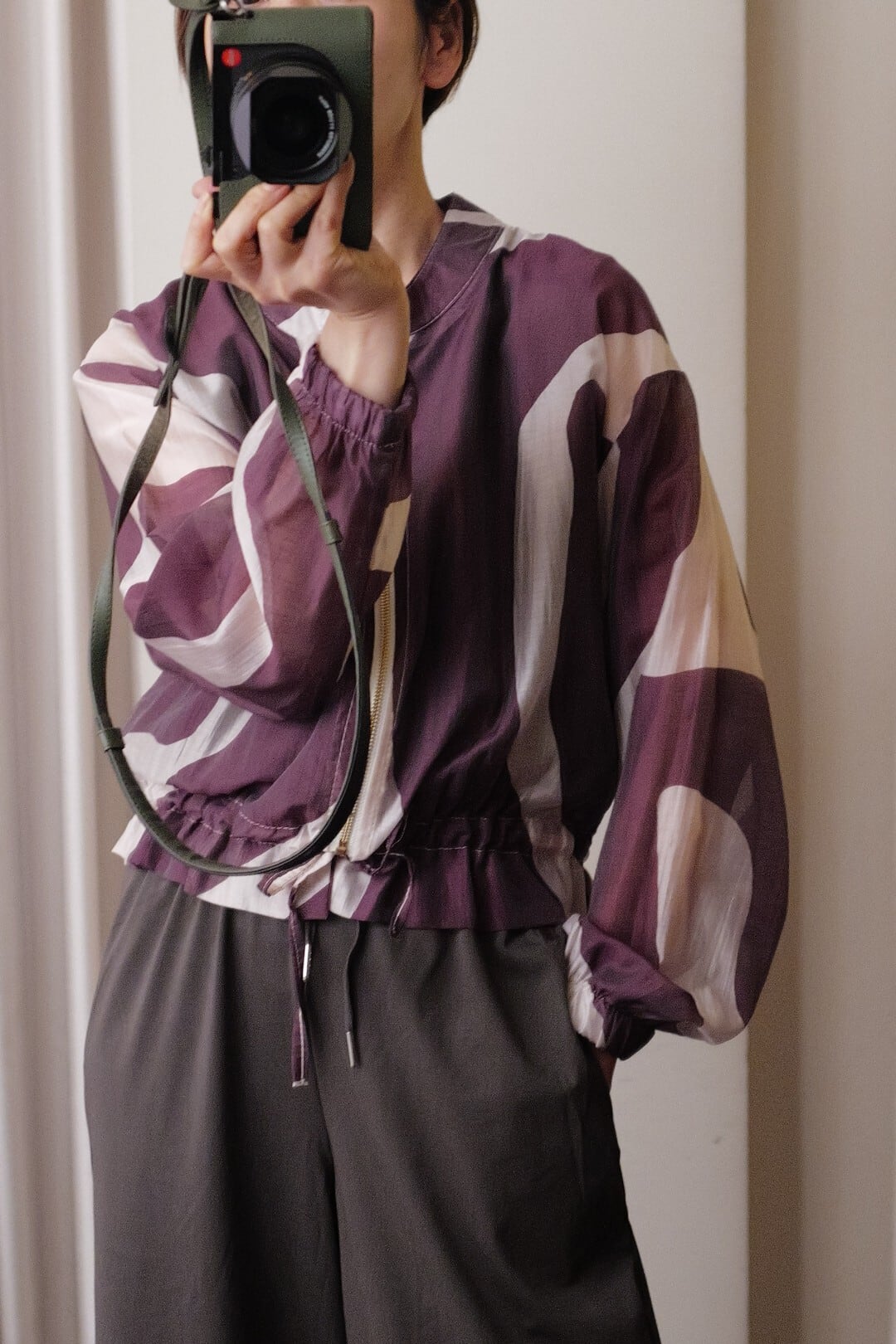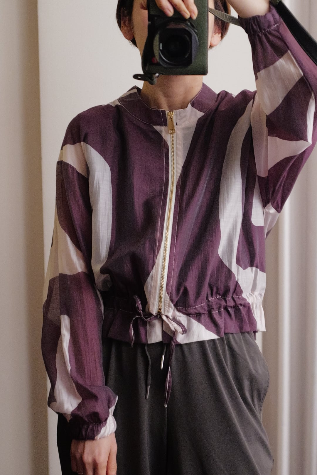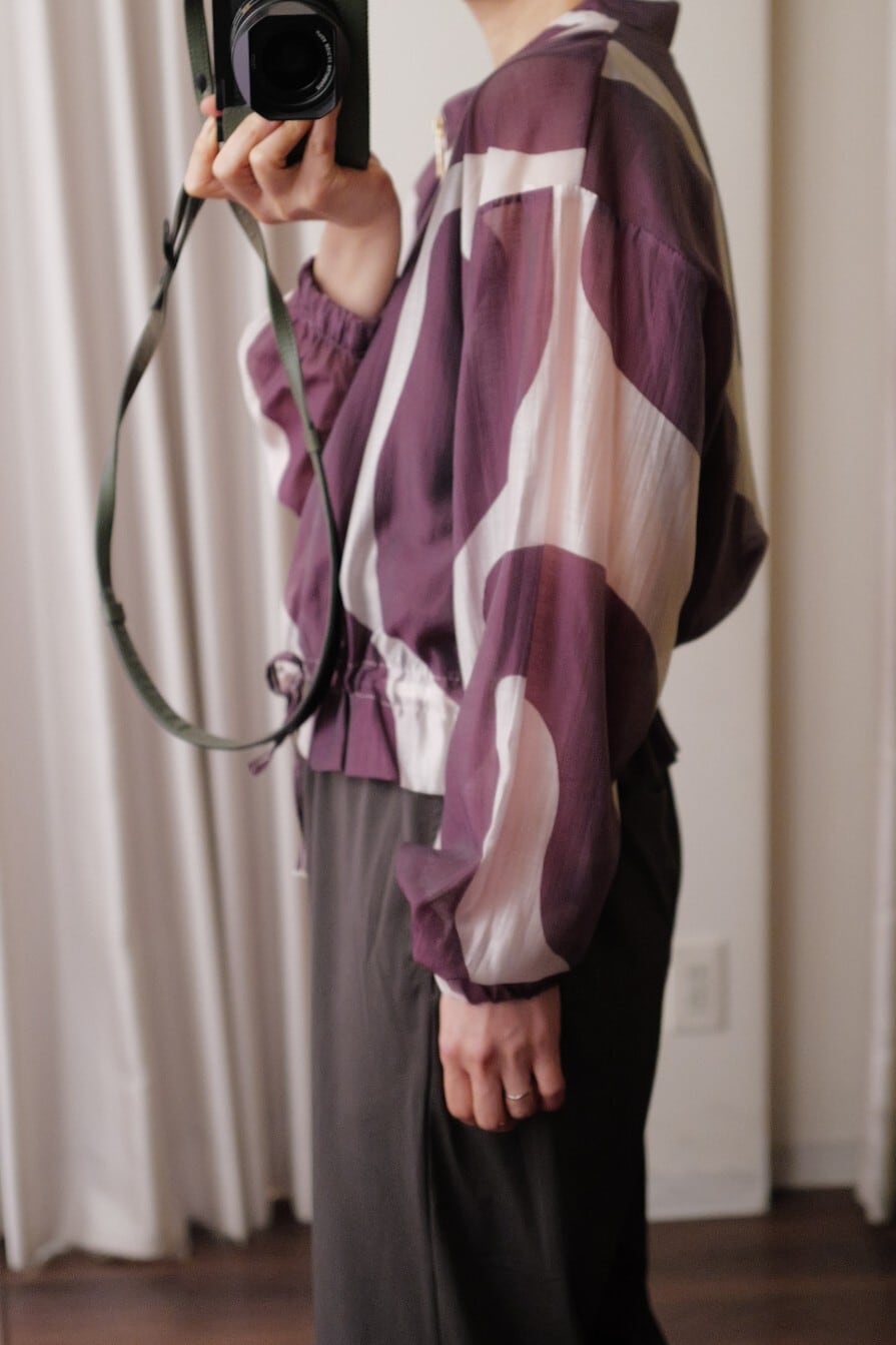 sheer print blouson purple