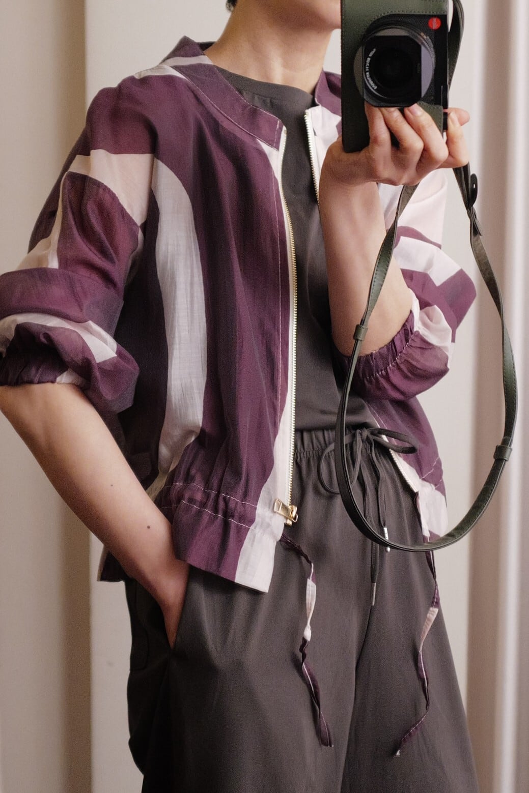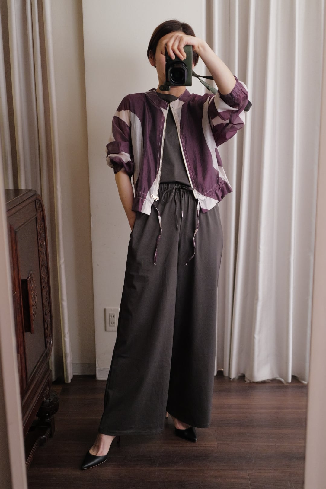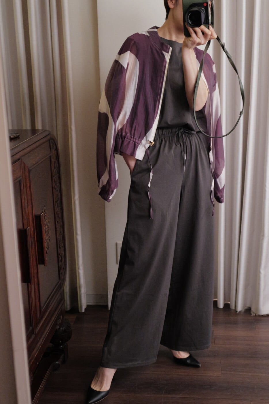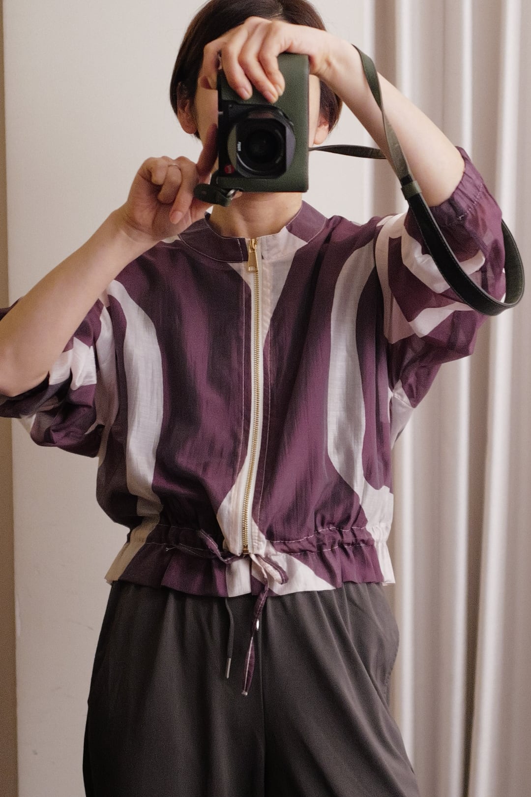 sheer print blouson purple
